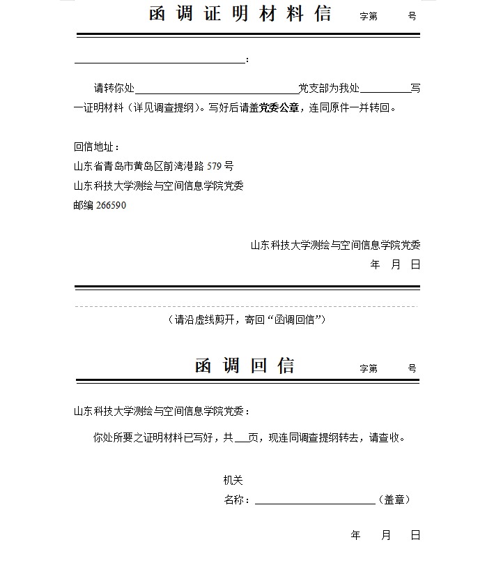 4.完整的函调寄回时需包括:函调回信(函调证明材料信第一联)以及政审情况,两个材料均需加盖党委章。