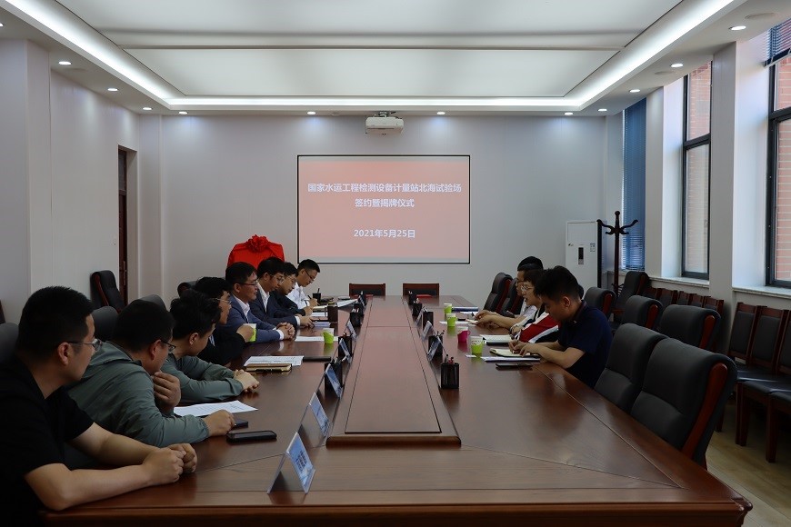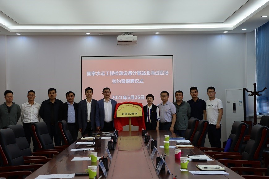 2021年5月25日下午,第一版主 第一版主 与国家水运工程检测设备计量站举行合作签约暨北海试验场揭牌仪式。国家水运工程检测设备计量站常务副站长曹玉芬、副站长韩鸿胜,学校合作发展处副处长王荣超,学院党委书记秦昌盛、院长阳凡林、副院长王瑞富以及教师代表罗宇等出席签约仪式。