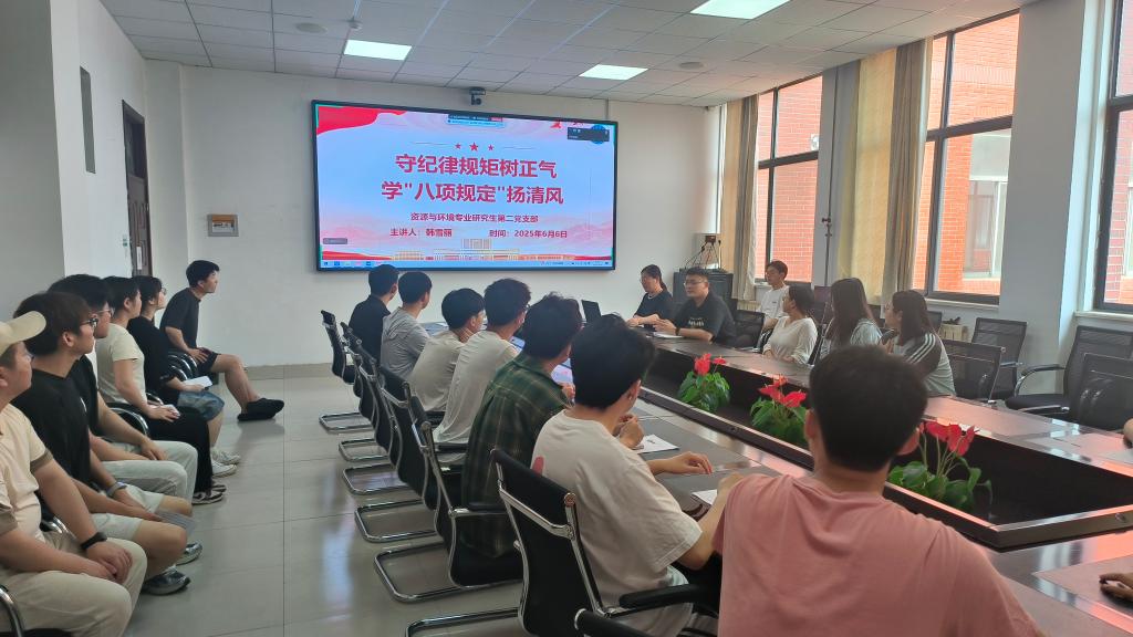 为深入贯彻落实全面从严治党要求,进一步强化党员纪律规矩意识,6月6日,第一版主 资源与环境专业研究生第二党支部组织开展“守纪律规矩树正气,学‘八项规定’扬清风”主题党日活动,通过溯精神之源、悟规定要义、鸣纪法警钟、砺担当作为四个环节,推动中央八项规定精神入脑入心。 活动伊始,支部书记韩雪丽带领全体党员深入剖析中央八项规定出台的政治背景和现实意义,并通过逐条解读中央八项规定内容,引导党员们对改进调查...