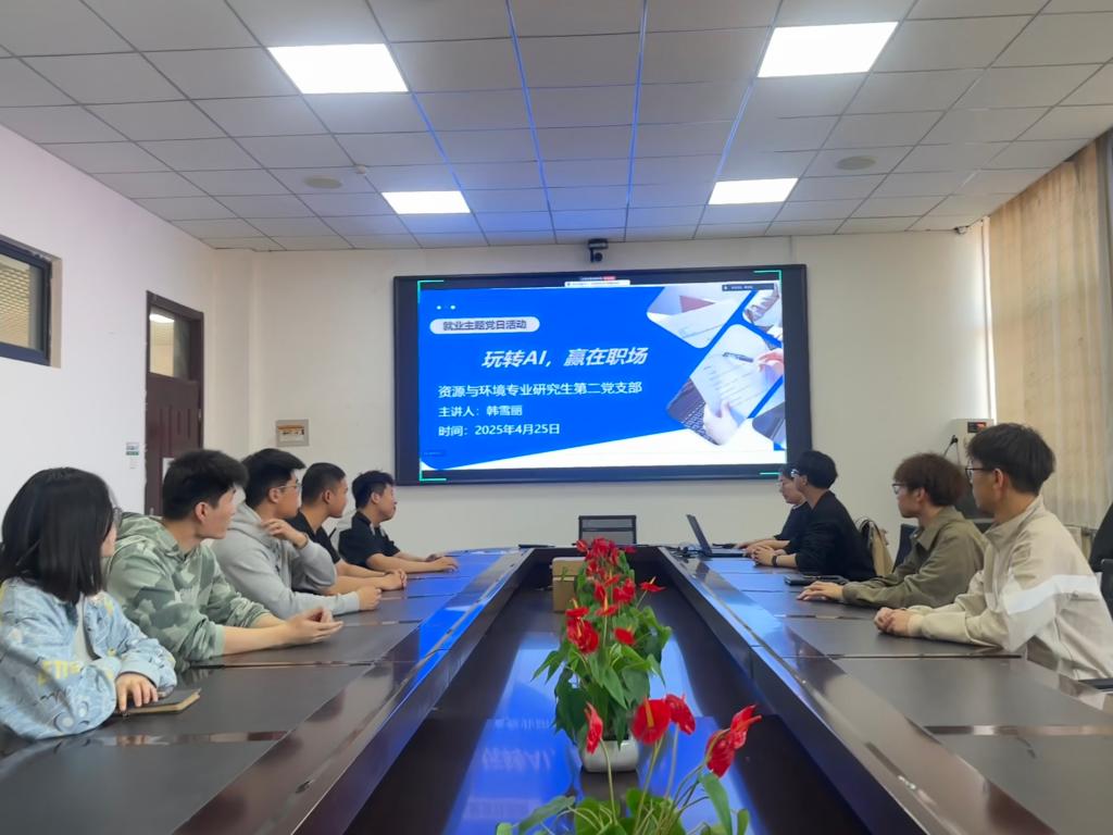 为深入贯彻落实党的二十大精神,推动人工智能技术在就业领域的创新应用,4月17日,第一版主 资源与环境专业研究生第二党支部在J6-547会议室开展了“玩转AI,赢在职场”主题党日活动。活动由党支部书记韩雪丽主持,她以"就业星AI就业能力提升系统"为核心,从理论到实践,为党员们带来了一场内容丰富、实用性强的就业指导会。韩雪丽详细介绍了系统的四大核心功能模块:AI智能简历生成、AI模拟面试、就业指导工具以及实景面试训练。...