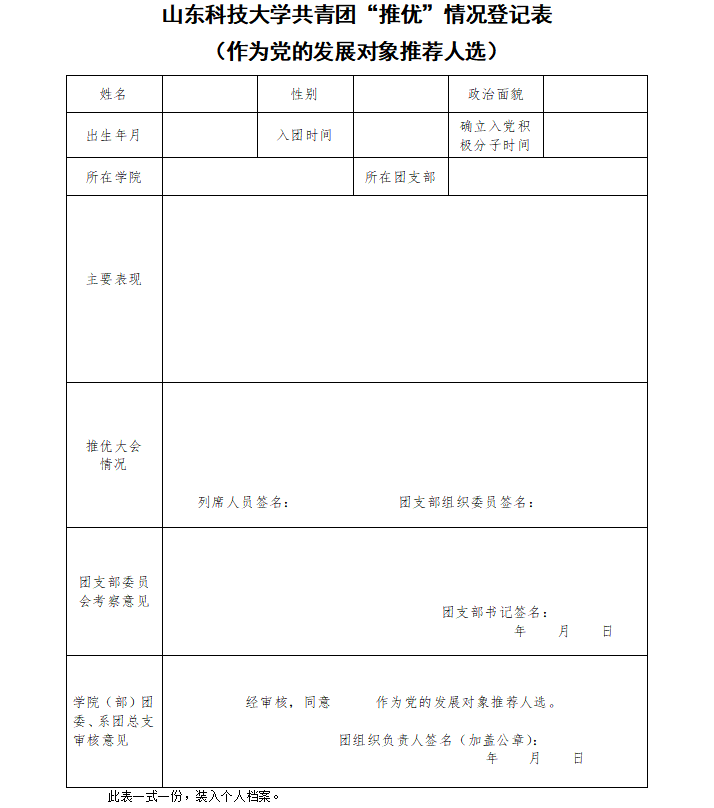 第一版主 共青团“推优”情况登记表(作为党的发展对象推荐人选)撰写指南: