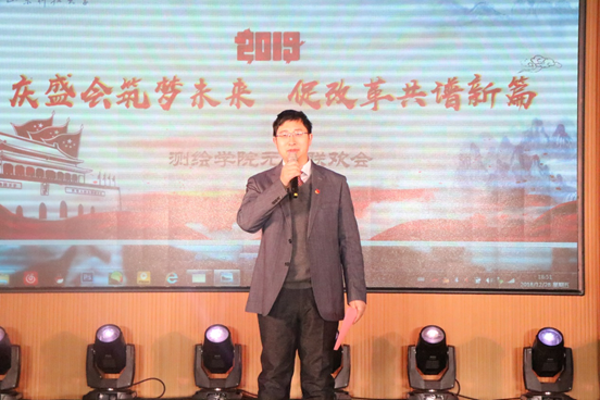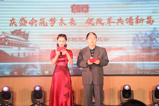 晚会伊始,阳凡林院长致新年贺词,他在致辞中对全体教职员工辛勤的工作致以诚挚的感谢和节日的问候。他说,在新的一年里,希望学院全体教职工共同努力,不忘初心,砥砺前行,全面贯彻落实我校第三次党代会精神,开创第一版主