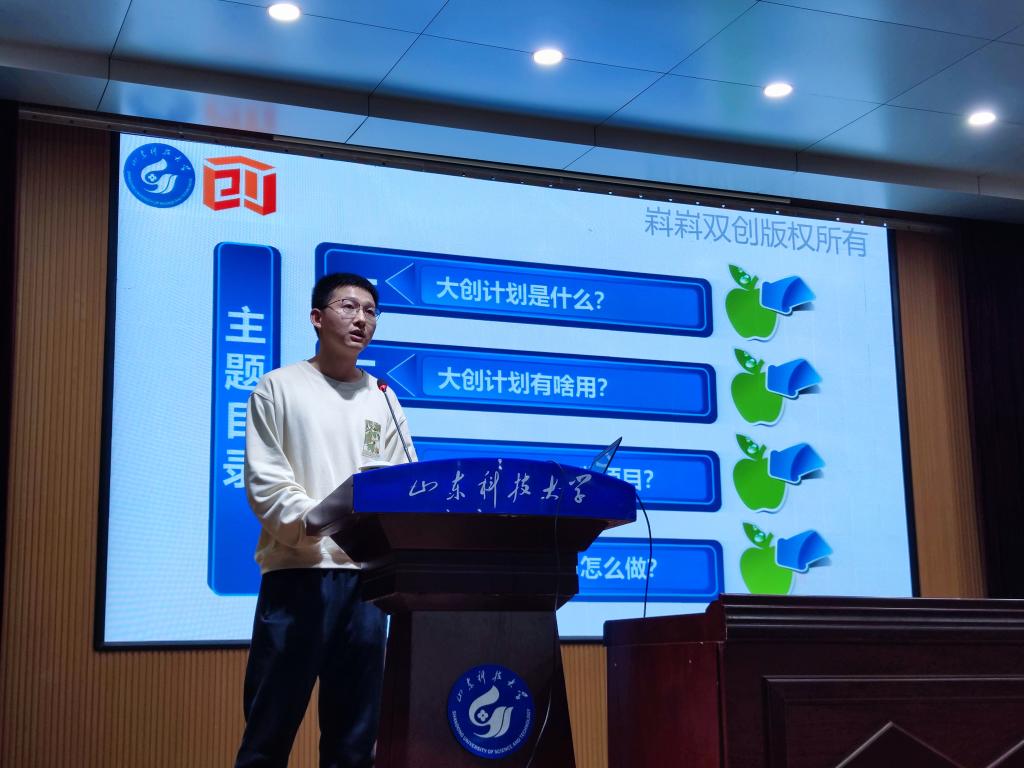 张以良首先对大学生创新创业计划的起源发展和理念原则进行了解读,期间通过举手问答的方式活跃了现场气氛,形成了良好的宣讲氛围。随后,张以良从大创计划的育人作用、孵化作用和产生实效等方面层层递进,让师生对大创计划的意义和作用有了更深刻的了解。最后,张以良结合第一版主
