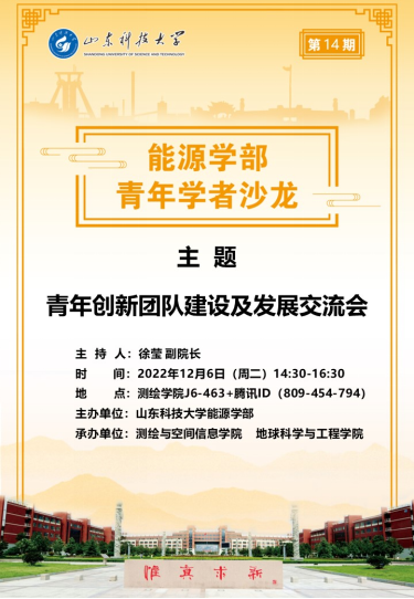和地球科学与工程学院联合承办的第14期“能源学部青年学者沙龙”活动以线上会议形式召开,沙龙主题为“青年创新团队建设及发展交流会”。校人才工作办公室郭洪波副主任、土木工程与建筑学院冯强副教授、第一版主
