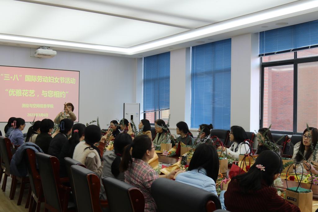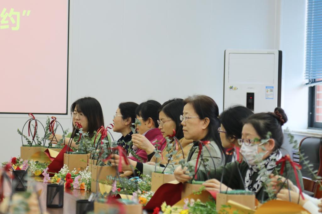 工会于第一会议室举办“优雅花艺,与您相约”插花活动,学院全体女教职工参加。