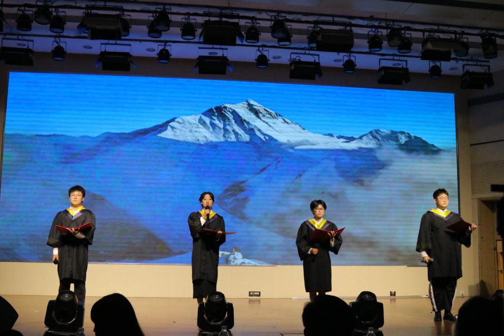 2023届毕业生“我最难忘的恩师”颁奖环节,一位位为测绘学子指引方向、引导人生的恩师走上讲台,他们的辛勤付出换来了学生们的尊重、鲜花与掌声!下半场的歌曲《小镇姑娘》、《交换余生》、相声《新闻联播》及器乐《精卫》等节目精彩纷呈,引发了在场人员的欢笑与思考。最后,随着一首《再见再见》,晚会在毕业生与老师们的合影留念中落下了帷幕,所有的不舍、感激与祝福都定格在了今晚一个个美好瞬间。