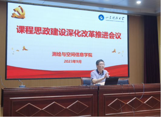 课程思政建设深化改革推进会议在学院报告厅召开。全体教职工参加会议。会议由党委书记秦昌盛主持。