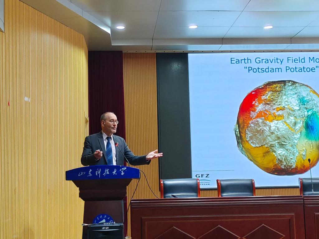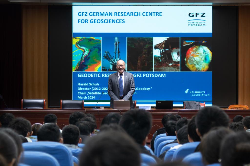 会上,Harald Schuh教授介绍了GFZ大地测量的主要研究方向,报告了空间大地测量技术反演地球重力场、海面高、地球自转参数等的研究进展,并对未来的研究方向提出了看法,鼓励学生重视科技创新工作,倡导利用量子技术的最新进展来进行大地测量研究,并现场回答了师生提问。