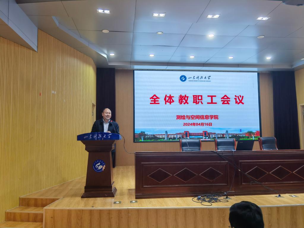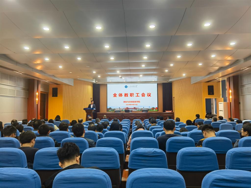 在J6-434报告厅召开全体教职工大会。党委书记范俊峰、院长涂锐及学院领导班子成员,全体教职工参加了会议。