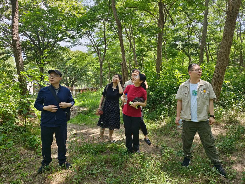 调研团受到珠山国家森林公园王德波经理、青岛森林野生动物世界孙晓莹经理等人热烈欢迎,并座谈。孙晓莹介绍了小珠山片区目前建设发展情况;赵相伟阐释了《数字小珠山》项目的整体设计构想,项目计划通过数字虚拟仿真技术,全面展示小珠山地区的地质结构、地貌特征、植被分布以及物种多样性等信息。双方初步达成共建协议,并商定结合大学生的认知实习与自然学院的科普研学,将植物、动物的研学内容与地质体系的课程深度融合;景区为学校提供测绘、考察场地,校方对景区无偿分享相关研究数据、报告及成果。