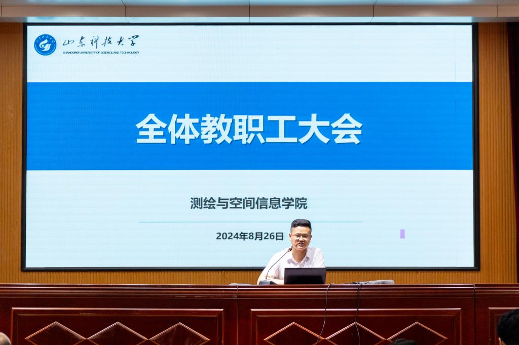 8月26日,测绘学院在J6-434报告厅召开全院教职工大会,学院党委书记范俊峰、院长涂锐以及学院领导班子,全体教职工参加了本次大会。