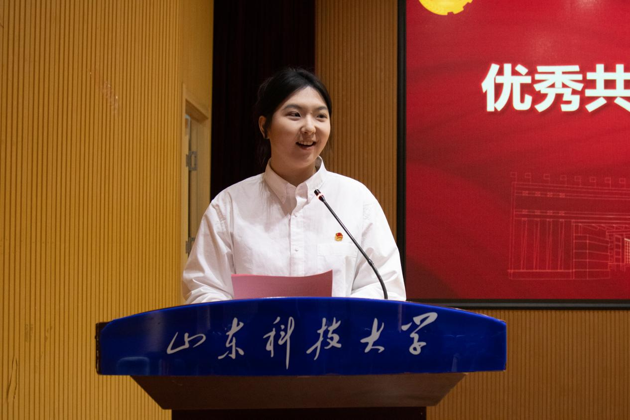 仪式在庄严的国歌声中拉开帷幕。化工学院辅导员孙梦柯宣读《中国共产主义青年团章程》中有关团员义务和权利的条款。耿倩宣读新发展团员名单,并向新团员代表颁发团员证。易凡、马韶霞为新发展团员代表佩戴团徽。38名新团员在领誓人王宏力的带领下,面向团旗庄严宣誓,活动现场全体团员重温入团誓词,他们用最洪亮的声音喊出自己的名字,表达出自己勇担时代重任的决心。新团员代表付宇轩和优秀团员代表王奕苏分别发言。随后,材料学院党委副书记兼副院长李建楠宣读青马工程基础班方案,并详细介绍培训内容和目标。