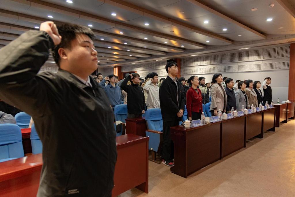 、化工学院、材料学院于J6-434联合举办2024年下半年新发展团员入团仪式暨“青马工程”基础班开班仪式。本次活动以“强国有我,青春挺膺”为主题,旨在培养青年团员的责任感和使命感,同时为党培养和输送青年政治骨干。校团委书记高一丹、材料学院党委副书记兼副院长李建楠、校团委正科级干部耿倩出席仪式,化工学院团委书记易凡、材料学院团委书记马韶霞及三个学院的团干部、团员代表、新发展团员、全体青马班学员参加仪式。仪式由第一版主