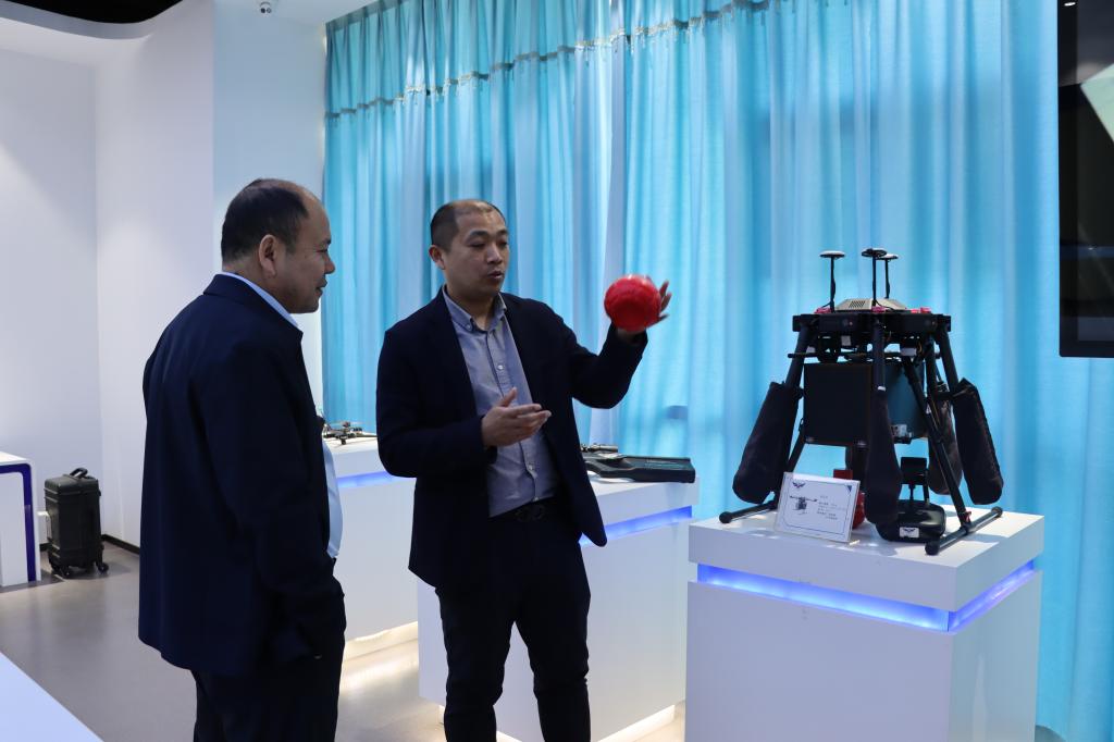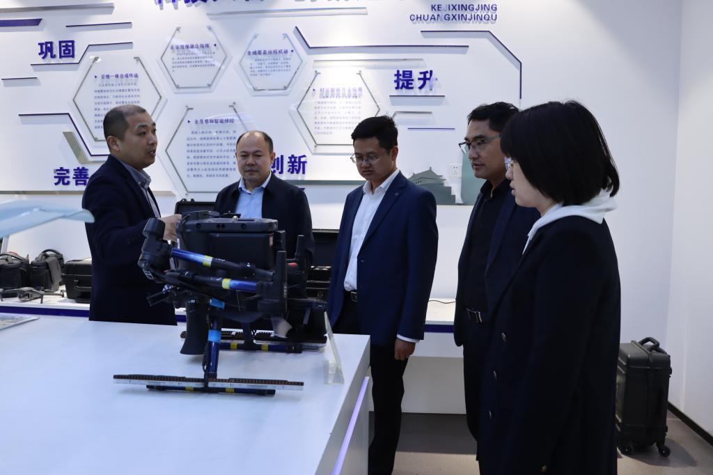 范俊峰、涂锐一行参观了瑞智飞控的研发产品、无人机基地、研发中心等,随后双方开展座谈交流。座谈会上,山东瑞智飞控科技有限公司副总经理任国贞对范俊峰、涂锐一行表示欢迎,并详细介绍了公司的发展历程、核心技术及未来规划。瑞智飞控在测绘遥感、智慧城市、应急监测等领域拥有丰富的技术积累,已获多项国家专利和行业认证。任国贞表示,希望与第一版主