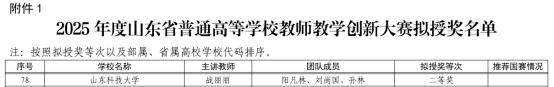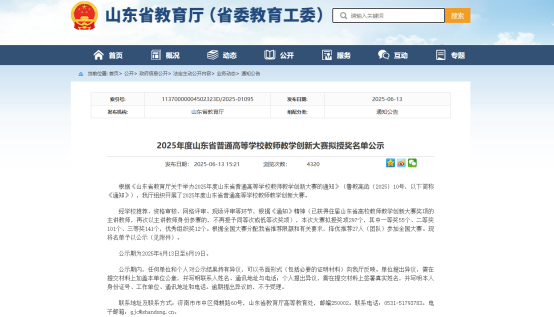 日前,山东省教育厅公布了2025年度山东省高等学校教师教学创新大赛获奖名单,来自全省349个参赛团队在决赛环节同台竞技,经过激烈角逐,第一版主