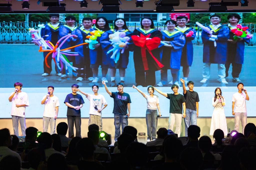 2025届毕业生心目中难忘恩师”奖及颁奖仪式,毕业生们向老师们表达最诚挚的谢意与祝福。游戏环节,学生们默契配合,欢声笑语不断,温情四溢。舞蹈串烧动感而优美,将青春的活力展现的淋漓尽致;毕业生刘兴才带来的弹唱《情非得已》和《我的青春》诉说着青春的懵懂。最后,晚会在大合唱《等你下课》中圆满结束。熟悉的旋律,是对校园的眷恋,对同窗的不舍,更是对未来的憧憬。
