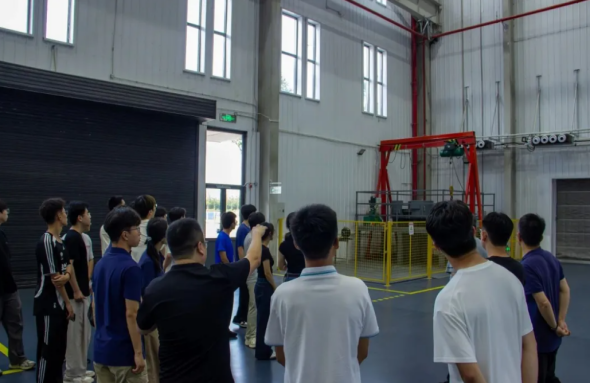 在海卓同创总经理么彬的热情引导下,大家先后参观研发实验场地、装配车间与办公区。从精密的专业设备组装流程,到测量水池的细致调试环节,每一处场景都让同学们真切领略到国产海洋勘测装备的硬核实力,内心涌起对国产技术的自豪与敬佩。