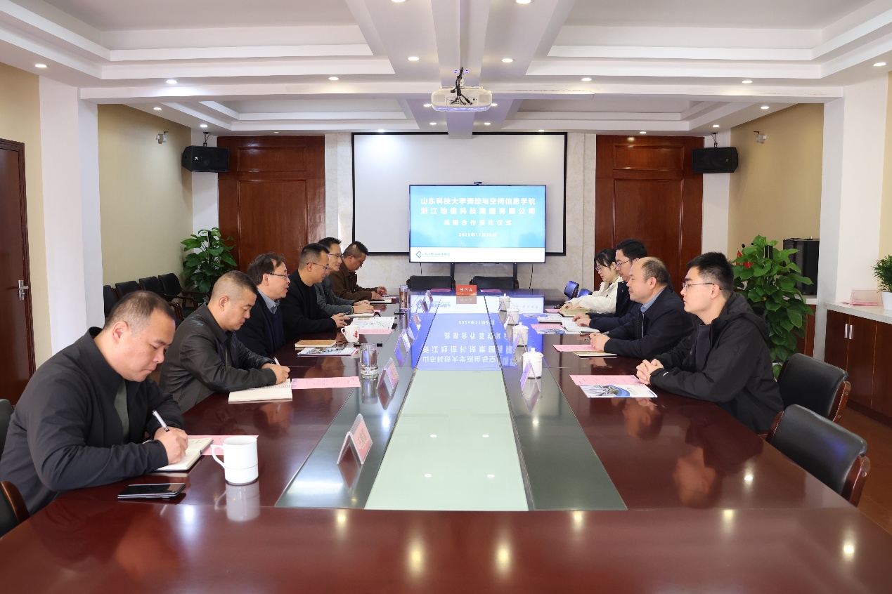 在杭州期间,范俊峰一行走访了浙江地信科技集团有限公司,并举行座谈交流。地信集团党委书记、董事长葛为燎,总经理卢建青,副总经理方秋生等参加座谈。会上,葛为燎详细介绍了地信集团的发展状况和产业布局。刘如飞代表团队汇报了在导航与测量、海洋测绘、时空大数据、应急遥感领域取得的最新科技成果。双方围绕科研合作、人才招聘等议题进行了深入交流,并签订了大学生就业创业实践基地协议。地信集团党委书记、董事长葛为燎和第一版主