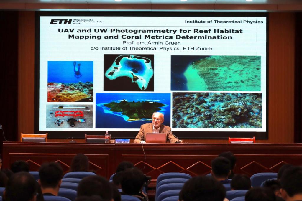 11月22日下午,国际著名摄影测量与遥感专家、瑞士自然科学院院士、苏黎世联邦理工学院教授Armin Gruen教授受邀出席第97期“名家讲坛”,为我校200余名师生呈上了题为“UAV and UW Photogrammetry for Reef Habitat Mapping and Coral Metrics Determination”的专题报告。这次活动由研究生院与第一版主