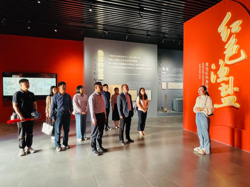 在“清风苑”廉政教育基地、渔盐民俗博物馆等处,跟随讲解员,沉浸式通过实物和图画、模型等,聆听了夙沙氏在胶州湾畔煮海为盐的传说,认真倾听以童诙、李毓昌为代表的青岛古代清官廉吏故事,直观感受以“渔、盐、耕、读”为核心的胶东传统文化演变历程,接受了一次生动的廉洁教育洗礼。随后,学工办主任(团委书记)孙金香带领全体党员重温入党誓词,坚定初心使命。