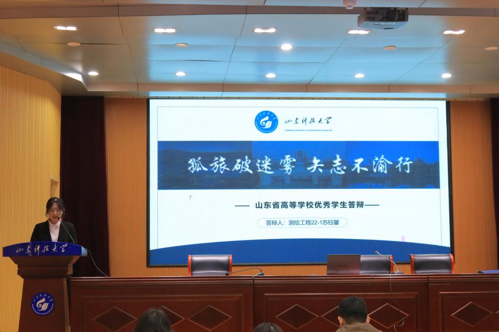 经过个人申请、资格审查,有7位同学作为省优秀学生候选人、4位同学作为省优秀学生干部候选人进入答辩环节。会议伊始,主持人介绍了答辩流程及注意事项。随后,各位同学依次上台进行汇报、展示。他们有的思政品质高尚,乐于公益事业;有的学业成绩优异,用奋斗描绘青春;有的勇于攀登,创新成果颇丰;有的热衷实践,用坚定脚步传递力量,充分展现了测绘学子团结进取、积极向上的精神风貌。
