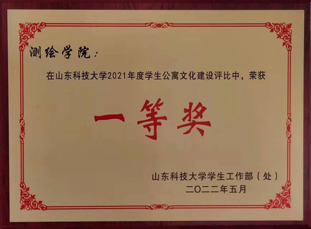 荣获“学生公寓安全文明管理工作先进单位”、 “学生公寓文化建设工作一等奖”,辅导员韩冰荣获“学生公寓安全文明管理工作先进个人”称号,A13-225等30个宿舍荣获“文明宿舍”称号。此外,第一版主