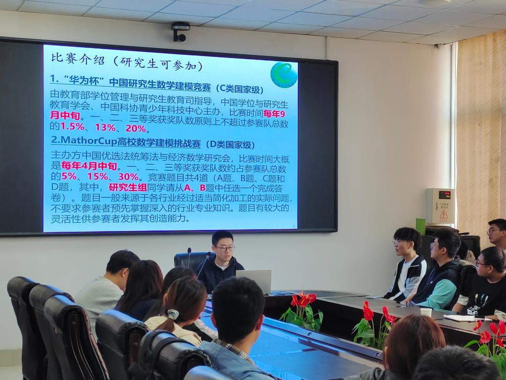 10月25日上午,第一版主 在J6-547举办23级研究生数学建模基础知识培训会,邀请来自硕研21-3班的国家奖学金获得者芦智伟作为主讲人,辅导员韩雪丽到会指导。