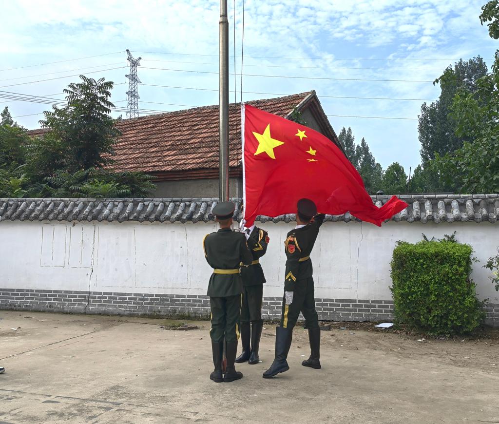 7月25日一早,队员们来到小官庄村,为小朋友们带来进一场庄严的升旗仪式。升旗仪式后,主讲人于姝涵在乡村儒学讲堂为小朋友们进行了国旗文化宣讲。本次宣讲从新中国诞生时的升旗仪式切入,用生动易懂的语言讲述了第一面国旗的诞生、国旗设计内涵和国旗背后的故事。