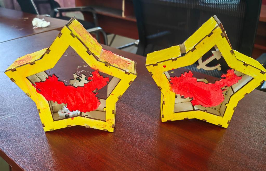 宣讲结束后,宣讲团成员为小朋友们上了一节有趣手工拼图课。小朋友们亲自动手拼接、涂抹颜料,分工协作、共同参与,完成了一个个精美的作品,在小朋友们幼小的心灵中种下了爱国的“种子”。