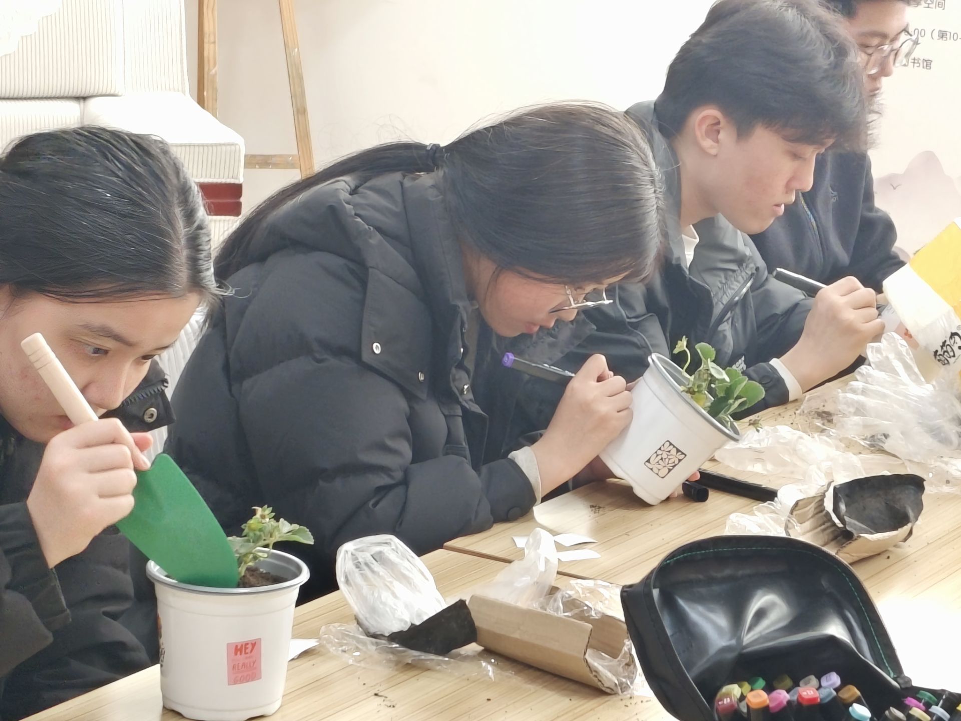 心理健康协会于图书馆209悦享空间开展“心晴手工坊”特别活动——“植此青绿,与春同行”植树节主题活动。