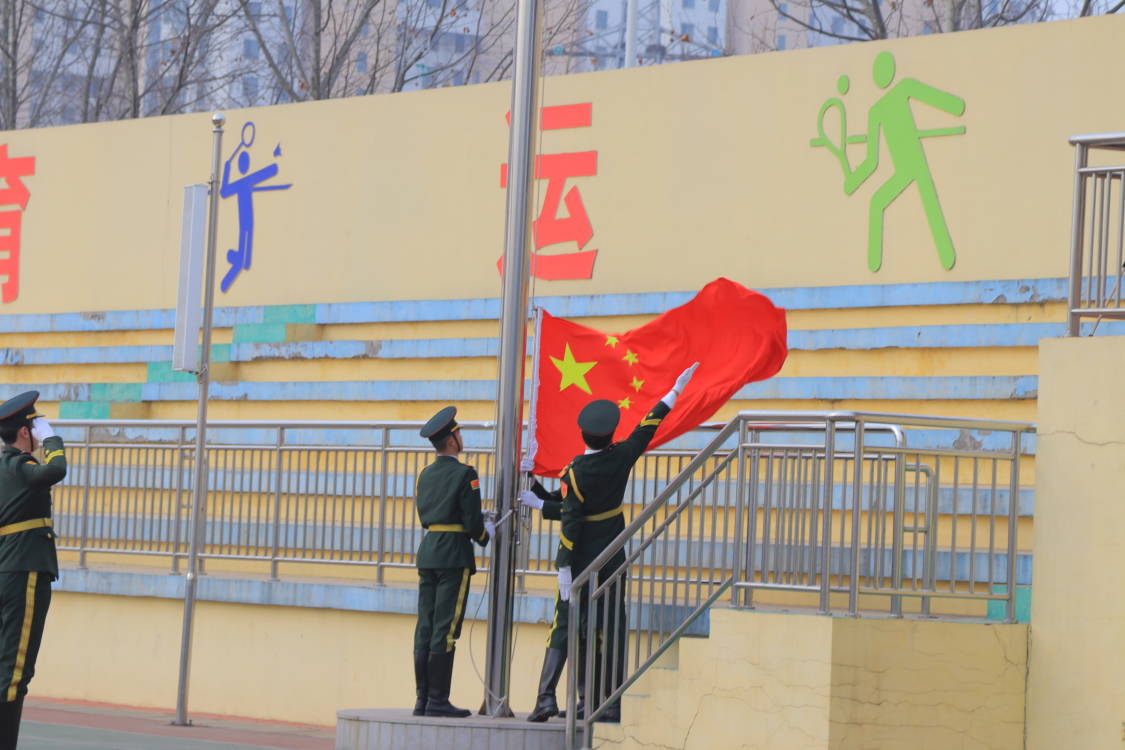 3月4日,应辛安中学邀请,国旗护卫队前往辛安中学参加新学期开学典礼升旗仪式。