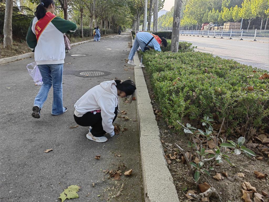 青年志愿者协会举办了以“青春相约文明,共建最美校园”为主题的义务清扫活动。