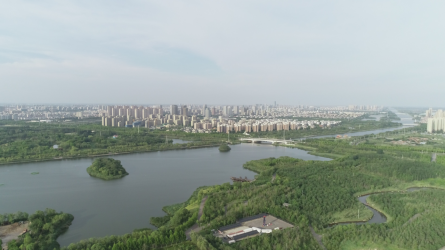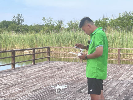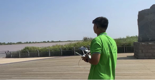 第二站为广利河森林湿地公园。广利河作为东营市中心城区的骨干防洪河道,近年来对黄河下游流域水系的协调与平衡做出了巨大贡献。实践队成员利用无人机对该区域进行全方位观测,对黄河流域水系环境综合治理有了大致了解。