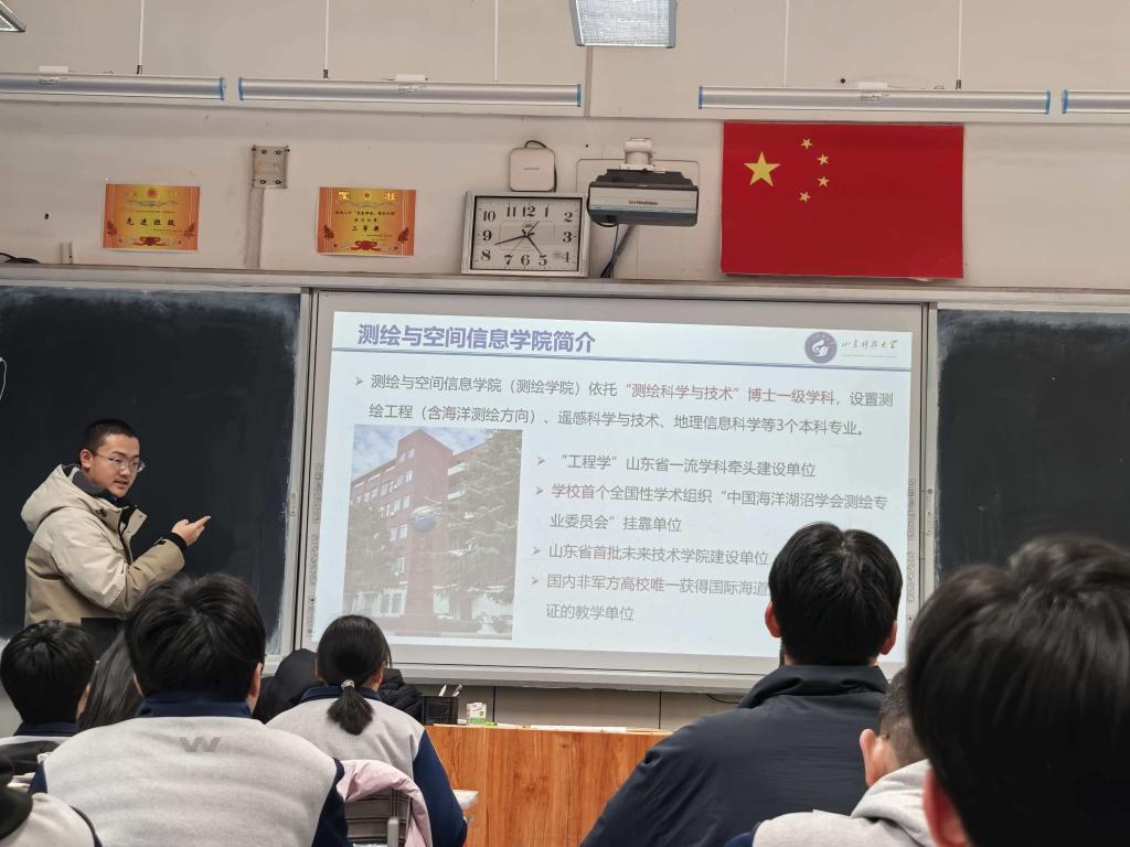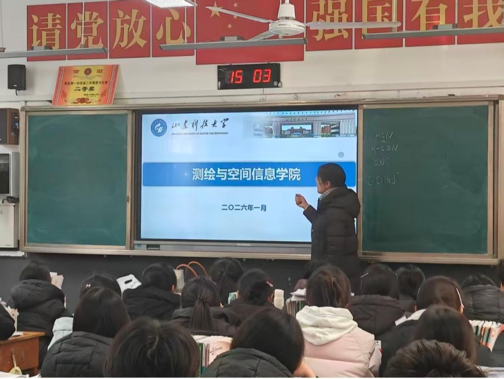 ,讲到地理信息科学如何用代码与数据重新描绘世界,将山川河流、城市街巷转化为可分析、可预测的数字模型时,我看到几个对科技感兴趣的同学眼睛亮了起来。我分享了自己如何从对专业名词感到陌生,到观摩学长老师一步步处理卫星影像,最终看到自己逐渐接触相关知识和技术、真正的参与其中。这种从理论到实践的踏实路径,正是山科赠予我的珍贵礼物。