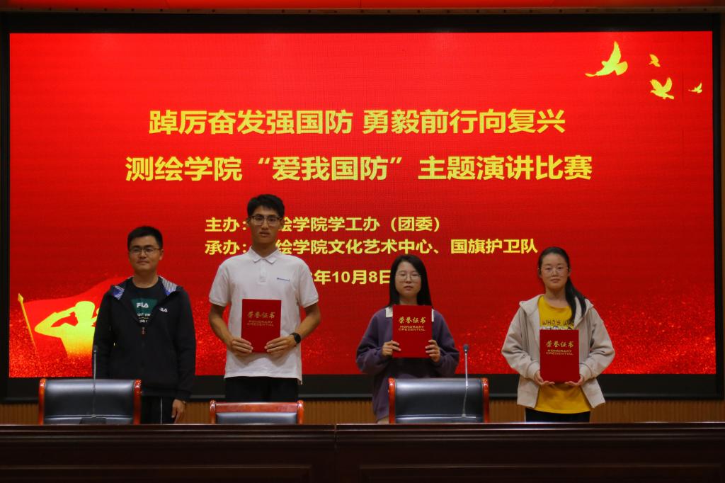 本次比赛演讲内容多样,参赛选手以学习贯彻党的二十大精神、伟大建党精神和英雄故事、人民军队发展历程、情系国防的身边典型事迹等多个主题进行讲述,为大家呈现了精彩的演讲。在场评委结合演讲内容、语言表达、现场效果等进行综合打分。经过激烈角逐,评选出一等奖2组、二等奖2组、三等奖3组,辅导员韩雪丽、韩冰、牛盛光分别为获奖同学颁发证书。