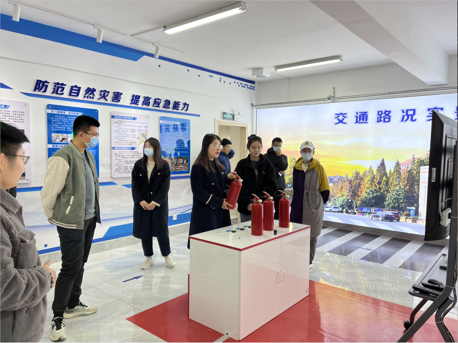 安基基地负责人首先介绍了基地的基本情况,让大家观看安全基地宣传片;随后来到二楼,从国家安全、反邪教、反电信诈骗、禁毒安全、实验室安全、交通安全、消防安全、防溺水、防范自然灾害、应急救护等10个版块对师生进行了全方位、多角度的教育培训。参加培训参观的师生们积极探索学习,主动参加灭火演练等模拟测试,将理论与实践紧密结合,收获了安全知识,掌握了基本的安全应急技能。