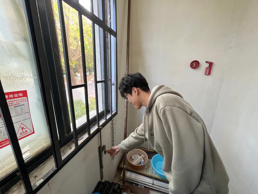 在逃生窗的检查和使用讲解环节,老师们仔细检查了每个宿舍的逃生窗是否畅通无阻、开启工具是否齐全,并现场向同学们演示了逃生窗的正确使用方法。吴昊强调,逃生窗是紧急情况下逃生的重要通道,同学们必须熟悉其位置和使用方法,以便在关键时刻能够迅速逃离危险区域。