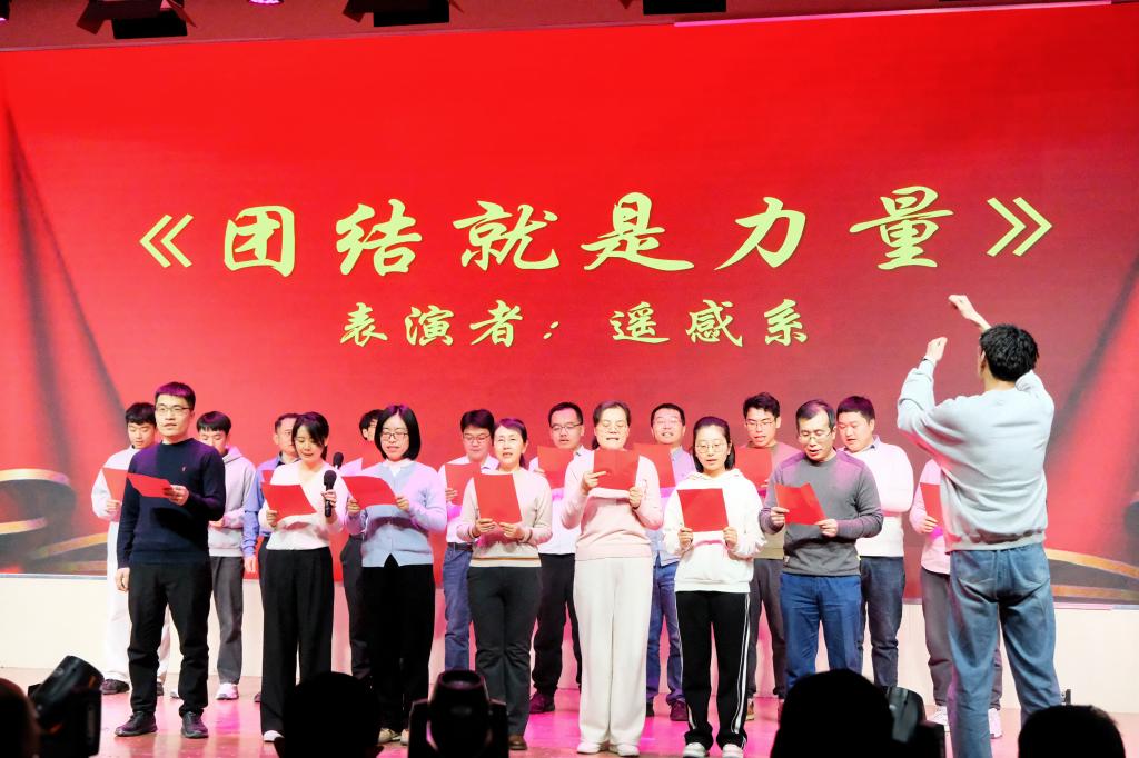 院机关全体辅导员以开场舞《快乐崇拜》拉开帷幕,瞬间点燃了现场的氛围;彭东东老师献上独唱《红旗飘飘》,刘畅老师演绎了独唱《此生皆欢喜》,让在场的每一位都沉醉其中;地信系教师的《毛泽东诗词》朗诵,字里行间让我们感受到了诗词之美和共产党人的胸怀境界。进入第二篇章,郭奕彤带来了活力四射的街舞《青苹果乐园》,刘憬潼演绎了热情奔放的爵士舞《Sugar Free》,李舒盼呈现了多姿多彩的民族舞蹈《古丽古丽》,研究生会的《床单舞》则以幽默风趣的情节和出色表演赢得了观众的阵阵笑声和热烈掌声。第三篇章中,院机关奉上的《歌曲串烧》、蔡昕洋的独唱《把未来点亮》、张凯老师改编的《因为基金》以及研究生会带来的合唱《恭喜发“才”》将现场气氛推至高潮。第四篇章在地信系的《童年》、院机关的《快乐老家》、测绘系的《上春山》、海测系的《五星红旗迎风飘扬》以及遥感系的《团结就是力量》中激情唱响,为观众奉上一场美轮美奂的音乐盛宴,充分展现了测绘教师的昂扬的斗志和积极向上的精神风貌,凝聚起团结奋进的力量。