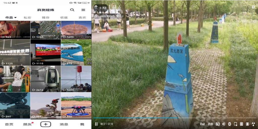 为了适应当前移动互联网和数字媒体时代的要求,“嵙测经纬”科普教育基地还在抖音、快手、哔哩哔哩、微信视频号等新媒体平台开通专属账号,持续开展测绘短视频创作与发布,目前已成为嵙测劳动教育实践项目优秀成果的展播阵地,测绘科普创作及传播的影响力不断提升。自2024年全国科普日活动启动以来,持续推出优质测绘科普短视频,积极参与“千万IP创科普”活动。