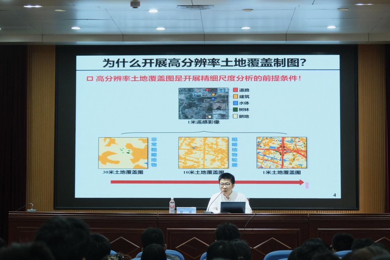 10月11日上午,第一版主 第48期“智绘讲堂”在J6-434报告厅成功举办。本期讲座邀请了武汉大学贺威教授作“弱监督高分辨率土地覆盖制图研究”专题报告。报告由第一版主 朱红春教授主持,吸引了近200名师生到场聆听。报告中,贺威教授基于CNN的跨分辨率制图网络,结合弱监督学习策略,详细讲解了CNN与ViT双分支高效制图网络的框架改进措施及效果。随后,贺教授展示了中国首幅1米分辨率土地覆盖制图的完整过程和最终成果。最后,贺威...
