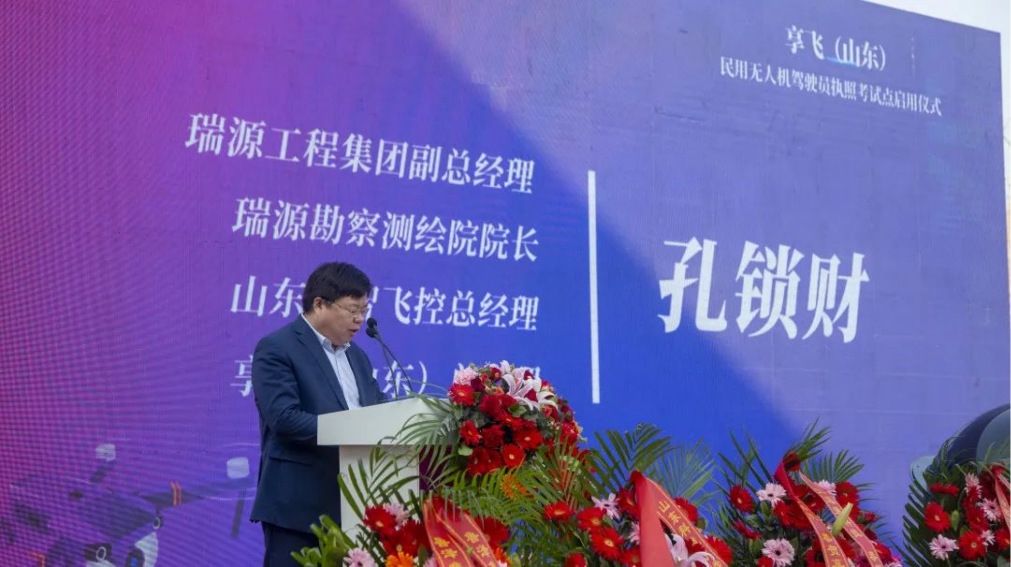 孔锁财在致辞中表示,享飞(山东)的发展之路,必将是赋能助力新区发展、服务社会之路!公司会研发出更多专业机型来满足行业需要,培养出更多的专业无人机驾驶员满足国家和社会需要,用真诚的服务来保障周边省市学员的考试需要!