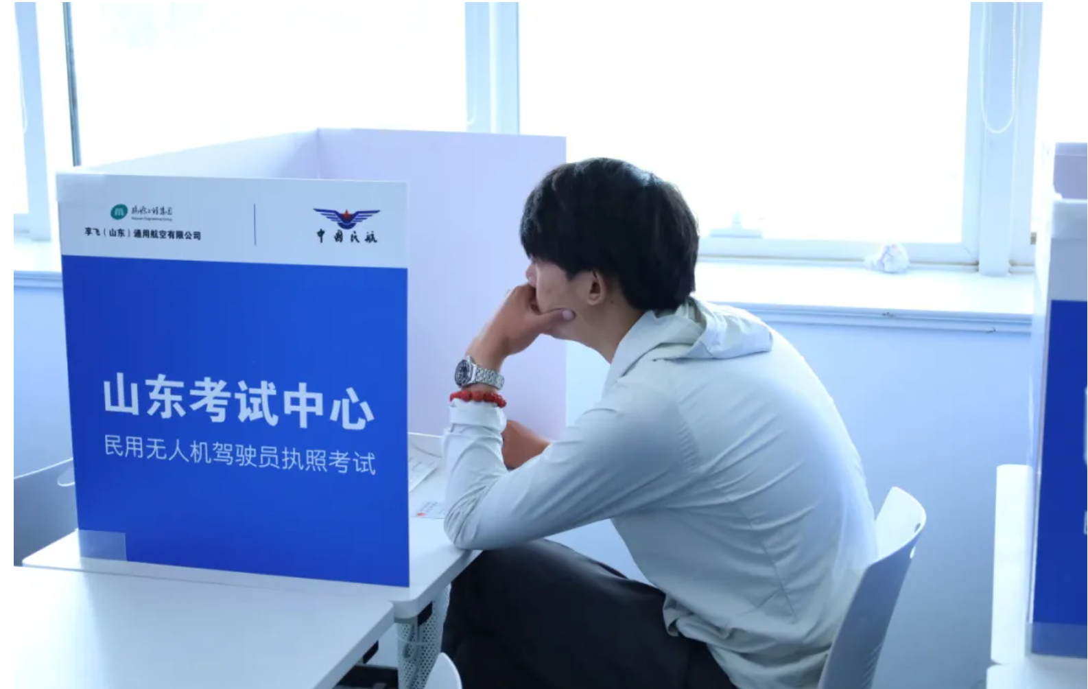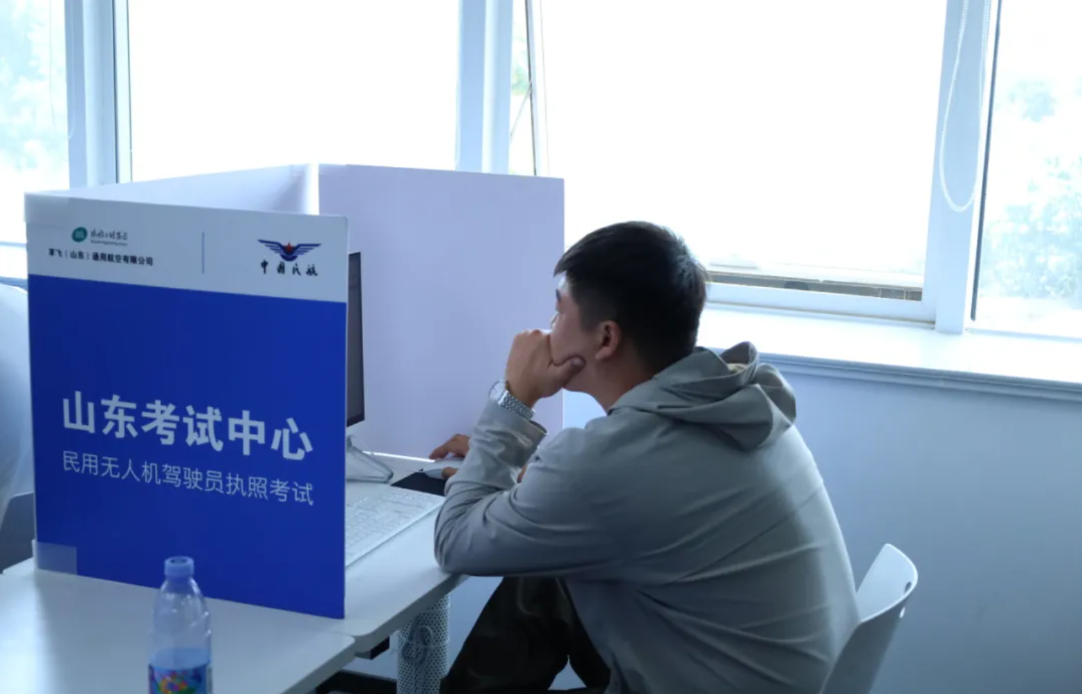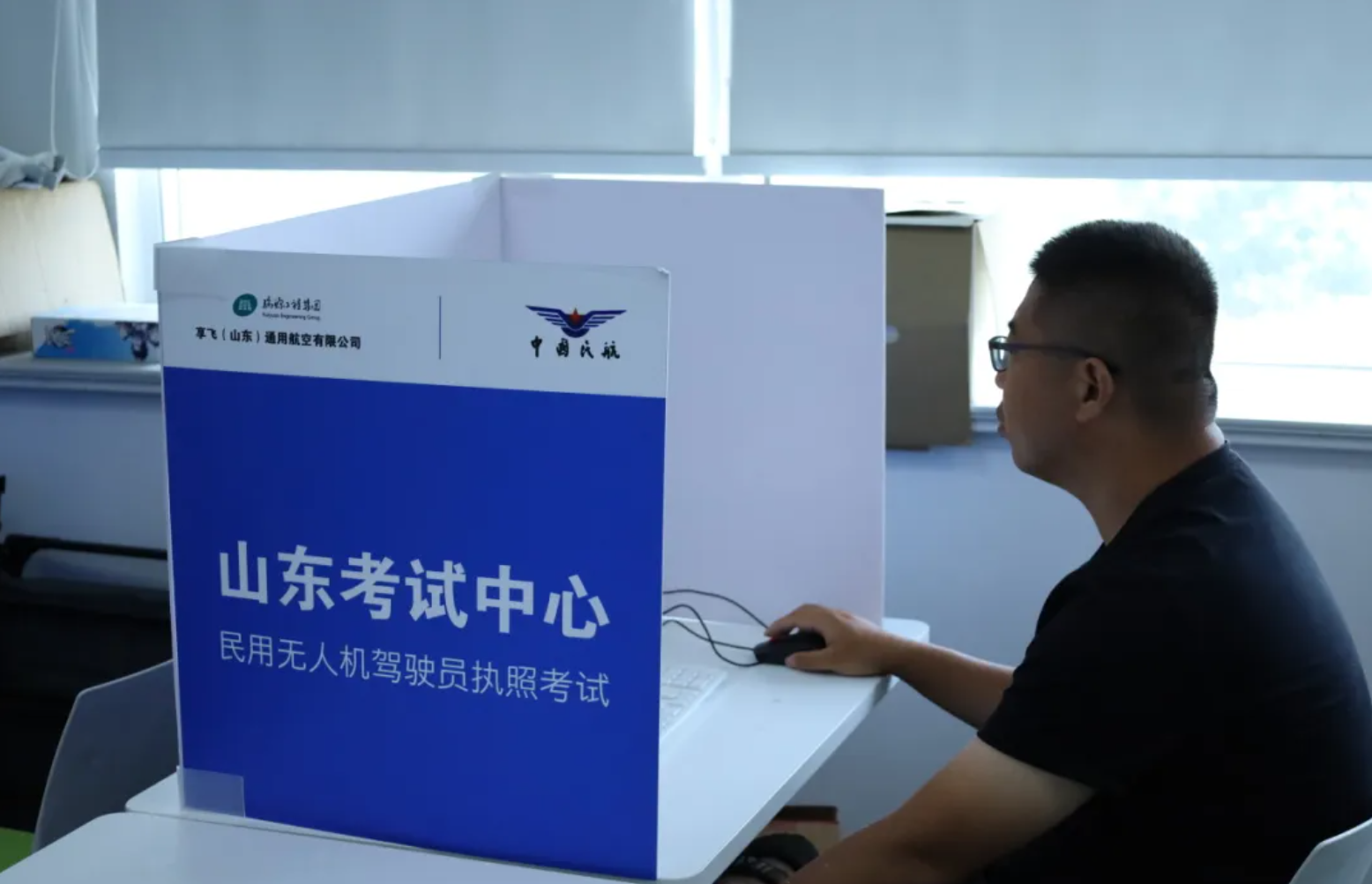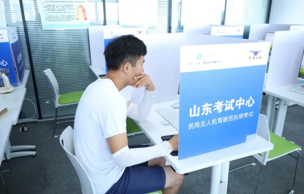 理论科目考试顺利展开。规范化、标准化的高配置理论考场,即使是首次前来考试的学员也没有丝毫的生疏感。对于睿飞无人机培训学校的学员来说,学、训、考同标准场地,更是考时如学时一样,各个知识点如在眼前。