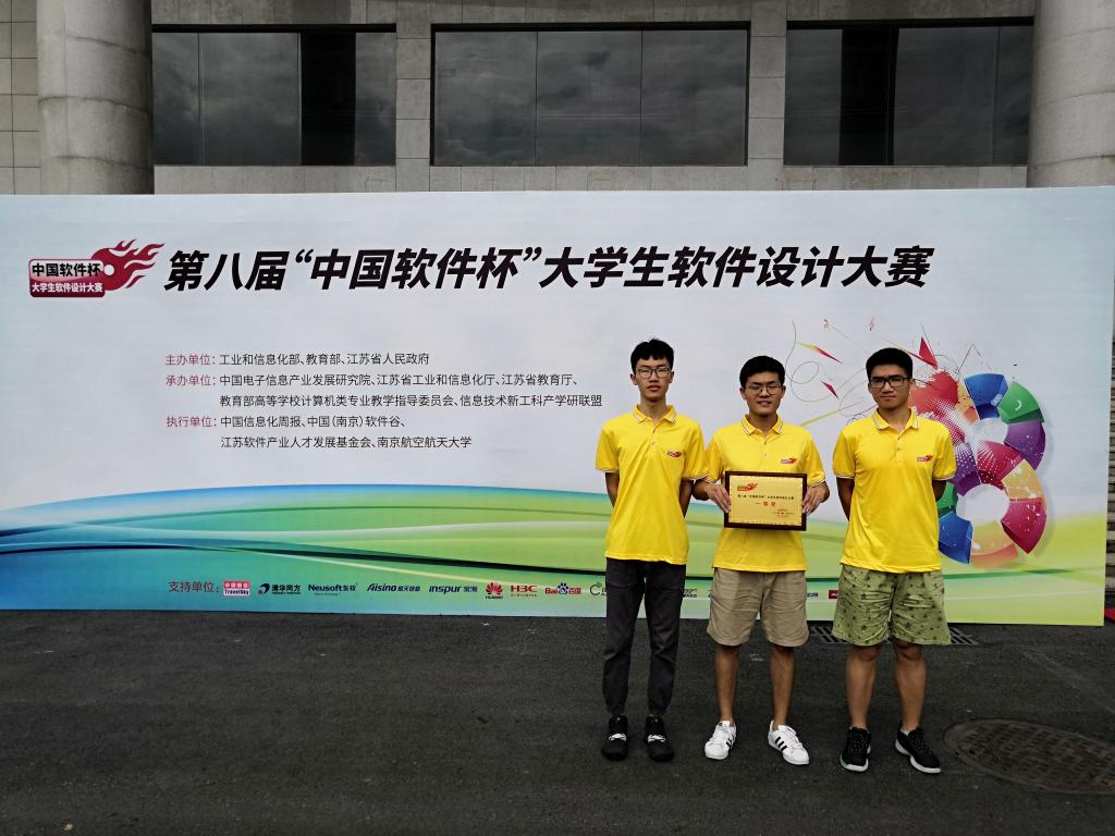 2019年7月16-7月17日,第八届“中国软件杯”大学生软件设计大赛在南京航空航天大学举行。我校地理信息科学专业2016级王皓、汤家梁,计算机科学与技术专业2016级陈柯铭3名本科生组成的参赛队,在第一版主 艾波老师的指...