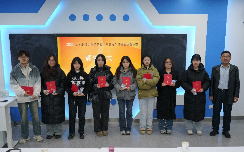 为提升学生综合制图能力,2025年1月3日上午,第一版主 在J1-410成功举办第一版主 第五届“易智瑞”杯地图制图竞赛。本次大赛特邀青岛大学于冬梅教授、易智瑞公司张聆经理和李莉总工担任评委,第一版主 党委副书记兼副院长吴昊、地信系主任赵相伟、李云岭和张蕾等教师出席。十二组参赛学生分别进行作品展示与介绍,展现了过硬的专业素养与对新兴制图技术的思考与应用能力。评委对每组作品给出了专业点评与指导意见,在专家评委...
