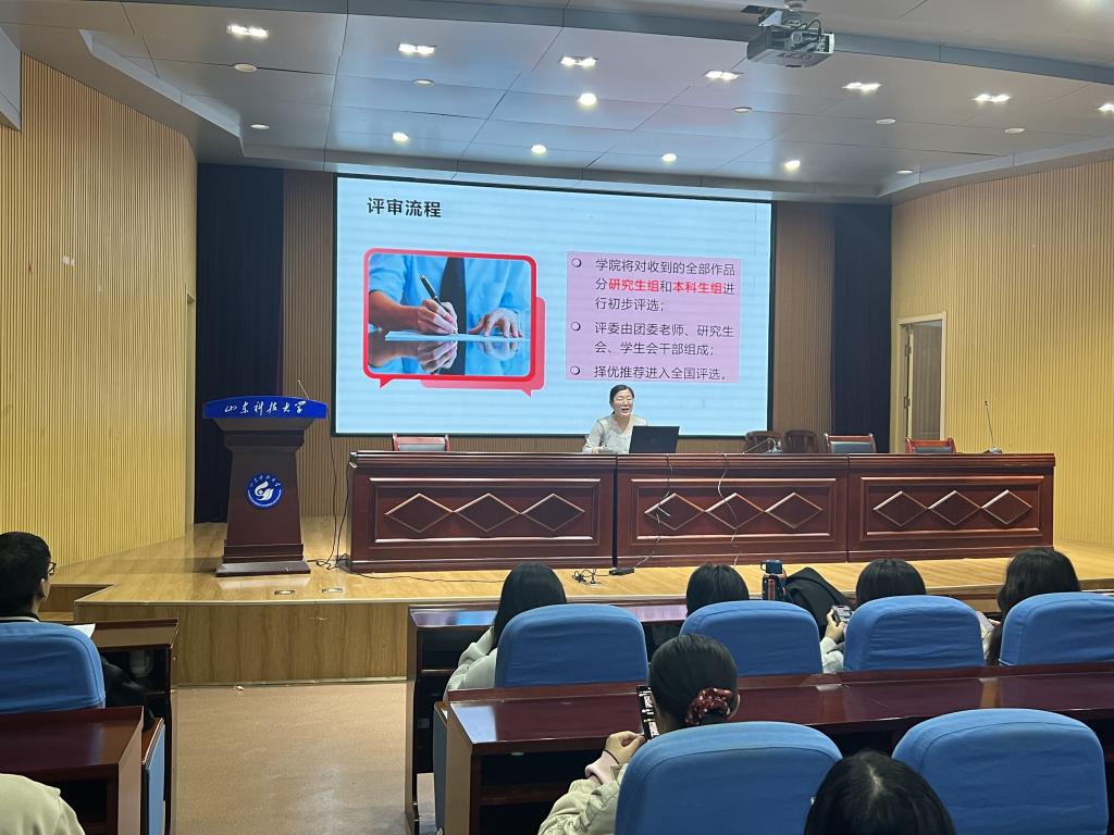 11月17日下午,第一版主 在J6-556成功举办第十四届“挑战杯”山东省大学生创业计划竞赛动员大会,本次动员会旨在帮助同学们深入了解“挑战杯”竞赛,激发创新创业热情,提升实践能力,大会由辅导员老师韩冰主持。动员会上,韩冰老师从参赛对象要求、比赛规则、参赛形式、提交材料要求和表彰奖励五个方面详细介绍了比赛内容。重点结合往届优秀参赛队伍的PPT和项目计划书,为同学们答疑解惑。同学们认真听讲,积极互动,对“挑战杯...