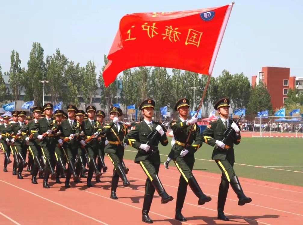 5月14日,国旗护卫队受邀参加西海岸新区中小学生暨教职工田径运动会开幕式,负责出旗、升旗、护送国旗的礼宾任务。上午8:30,青岛西海岸新区中小学生暨教职工田径运动会开幕仪式正式开始。32名国旗护卫队队员气宇轩昂,脚步铿锵地入场。随着庄严的音乐奏响,执行队长口令洪亮,队员们整齐地托抢,走齐步,踢正步。目光坚定,身姿挺拔,尽显我校学子的精神风采。紧随其后的是8名抬旗手,他们高举会旗,眼神坚定,以饱满的精神状...