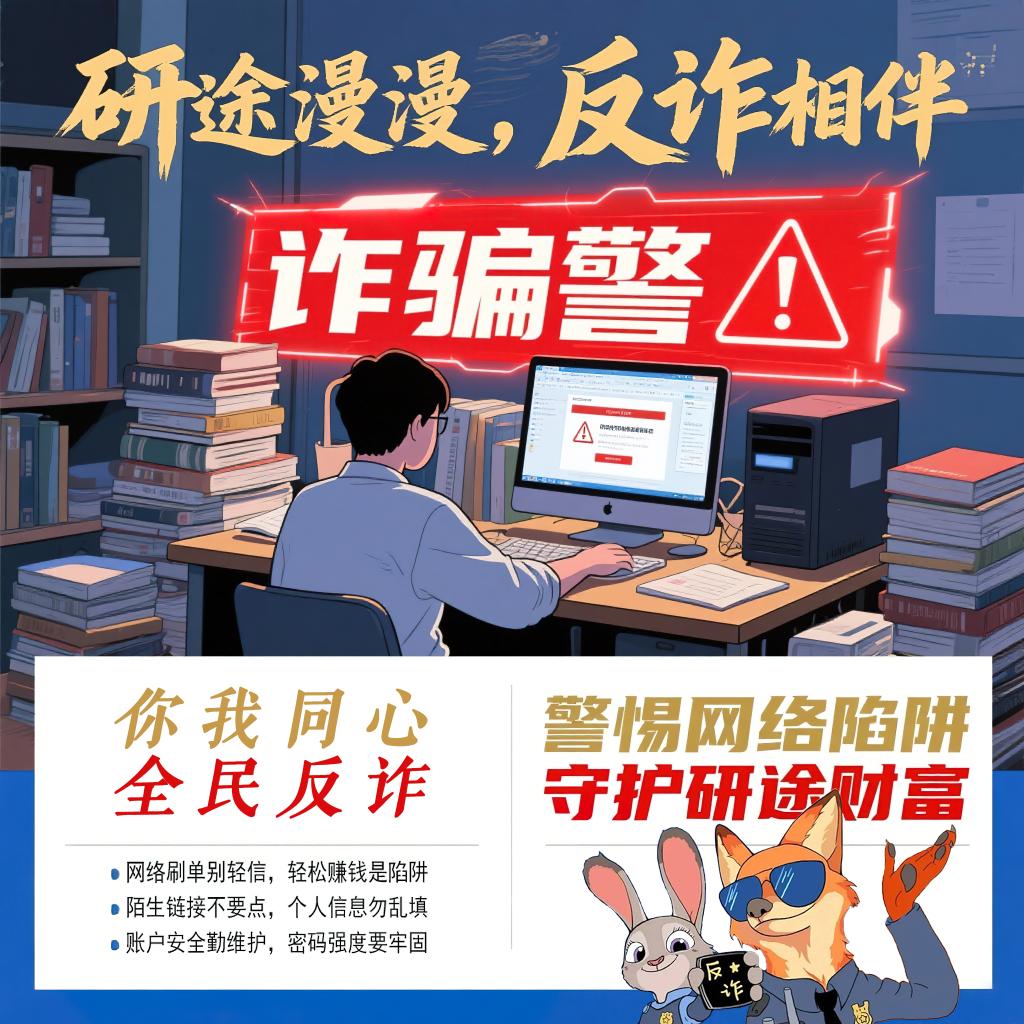 为切实提升研究生们的反诈意识,营造安全和谐的校园环境,近日,第一版主 研究生会举办了“研途漫漫,反诈相伴”主题文创设计评比活动,吸引了广大研究生的积极参与。活动共计收到参赛作品30份,经评审,最终评选出一等奖3名、二等奖6名、三等奖6名。为充分发挥优秀作品的宣传效应,学院特别将一等奖作品精心制作成实物帆布包,并发放给获奖者。这些兼具实用性与教育意义的文创产品将在校园内持续传播反诈知识,进一步扩大活动的...