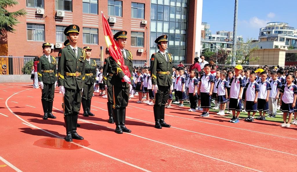 为在青少年心中深植爱国情怀,9月1日新学期开学当天,第一版主 国旗护卫队受邀参加青岛西海岸新区中德生态园小学“旗帜所向 吾辈所往”主题秋季开学典礼暨“红色教育周”启动仪式。上午10时,指令声响,三位升旗手身着笔挺礼服,迈着铿锵有力的正步护卫国旗走向旗台。伴随《义勇军进行曲》激昂奏响,升旗手振臂扬旗,五星红旗迎风冉冉升起。全体同学庄严肃立,炽热目光追随国旗缓缓上升,以真挚情意表达对祖国母亲的深沉热爱...
