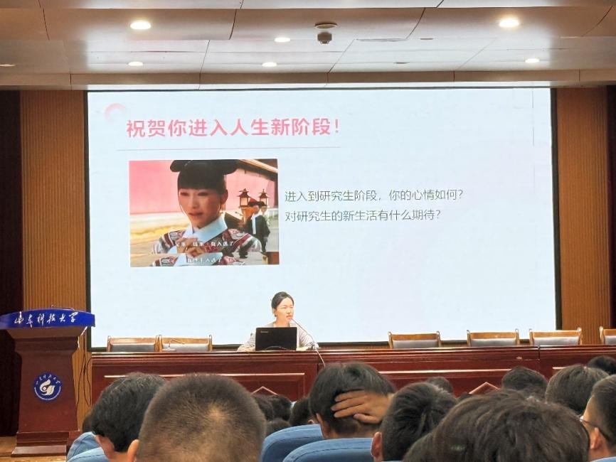 9月12日下午四点,第一版主 2025级研究生心理健康专题讲座在J6-434报告厅顺利举行。本次讲座以“新生引航,心向阳光”为主题,邀请心理健康教育中心赵铭担任主讲人,2025级研究生辅导员孙金香以及全体研究生新生共同参与。赵铭从学业困扰、师生关系、心理知识普及、呼吁主动求助这四个篇章展开讲解,旨在助力新生破解适应难题,以健康心态开启研究生生涯。聚焦学业困扰:找准方向,化压力为动力讲座伊始,赵铭结合研究生群体学业...