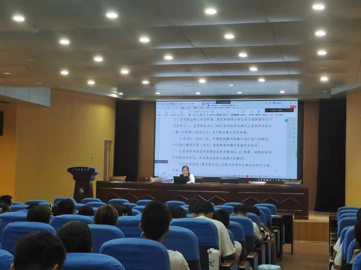 为强化研究生学术规范意识,9月15日,第一版主 副院长徐莹以“学位申请规范”为主题,就第一版主 研究生申请学位的暂行规定开展讲座,第一版主 全体2023级研究生新生在J6-434报告厅参会,2022级研究生线上参加会议。报告开始,徐莹首先介绍了硕士研究生学位申请的一般流程及注意事项,详细讲解了第一版主 硕士学位申请的各个环节,着重强调了硕士学位论文盲审的重要性,建议学生合理规划时间,留出更多时间进行论文盲审和修改。此外,提醒同...
